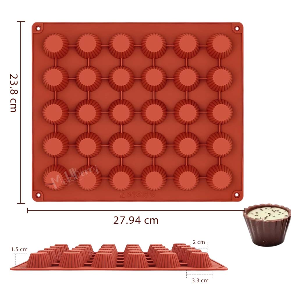 Moldberry 30 Cavity Mini Muffin Shape Silicone Mould | Muffin Mould for Cake Chocolate Cookie Pudding Peanut Butter Cupcake-Pack 1