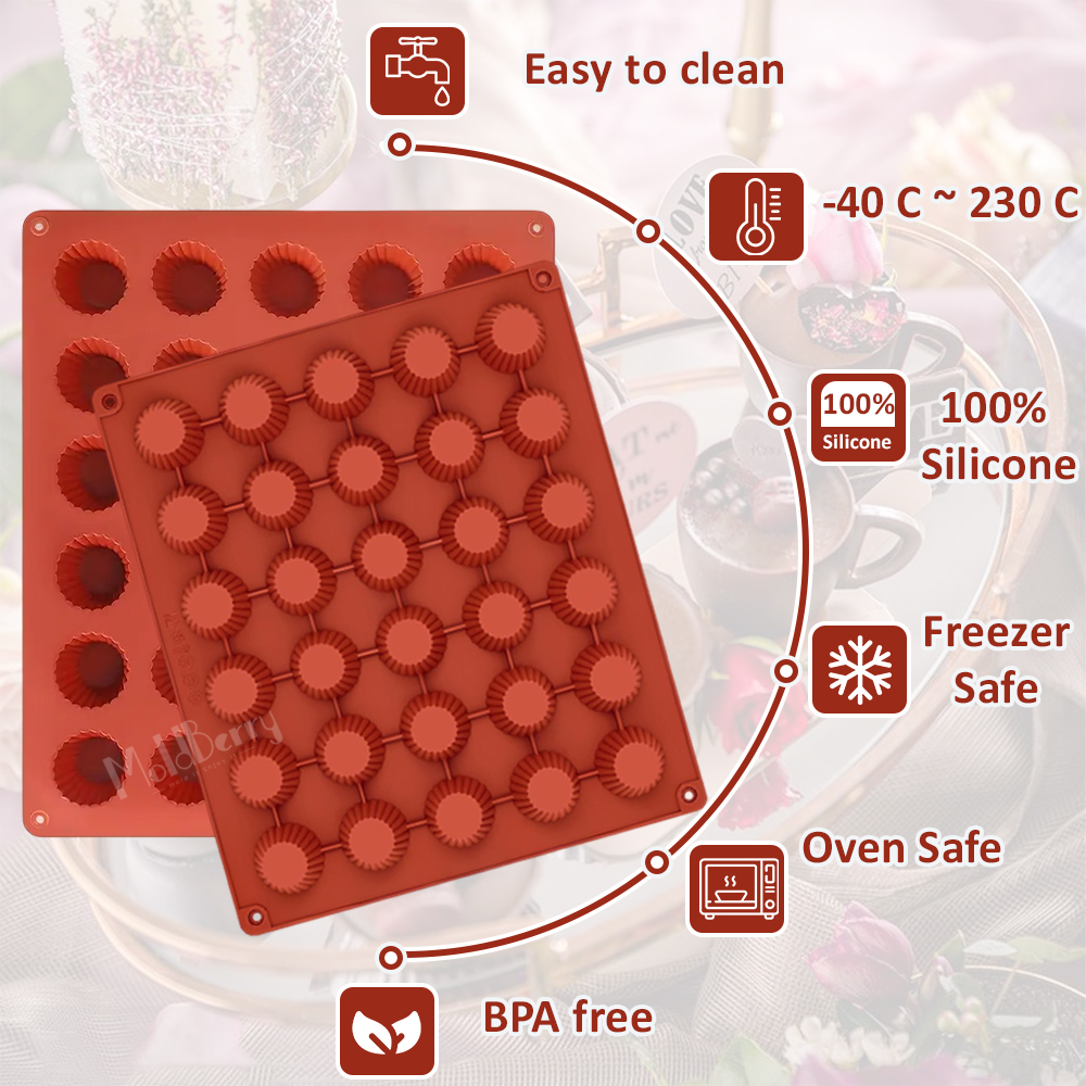 • Premium Quality: Mini peanut butter cup mold is made of 100% food-grade silicone, BPA free, non-stick, flexible (We suggest to put a hard baking tray or sheet under these molds before filling them for easy transfer)