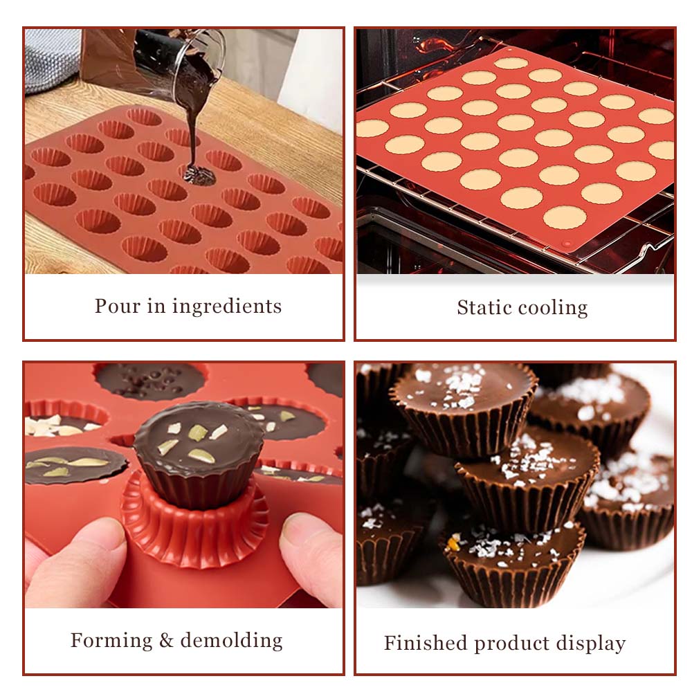 • Non-Stick to Release: Simply pour your favorite ingredients into silicone baking molds, after the peanut butter cups completely cool, you can easily pop out them by pressing the button of the molds.