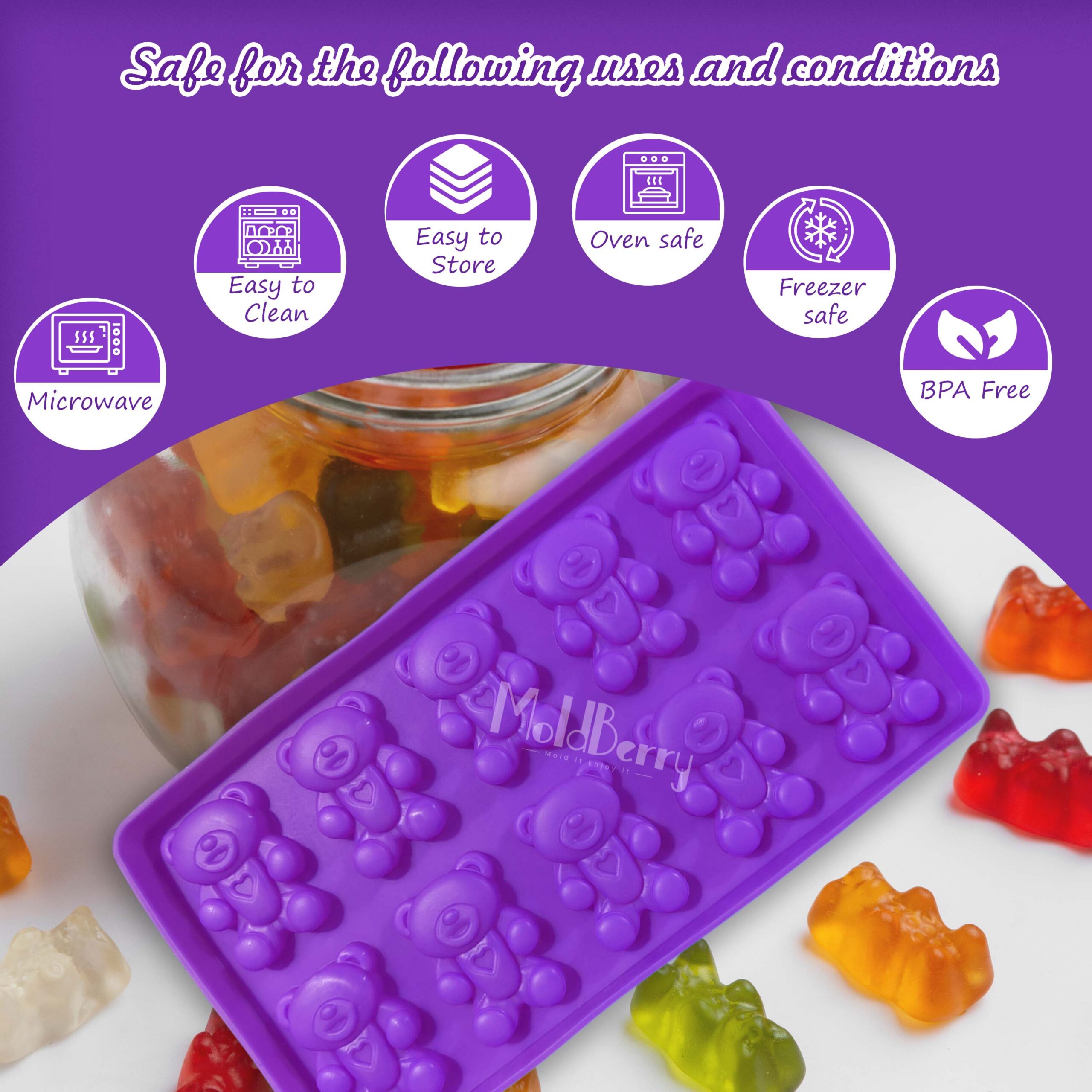 • Easy to Use: The silicone gummy bear candy molds is non stick, property of silicone is easy to release the chocolate, candy and any others from the molds. The Silicone candy molds are Washable(dishwasher safe), Flexible, Non-Fading, Non-Staining.