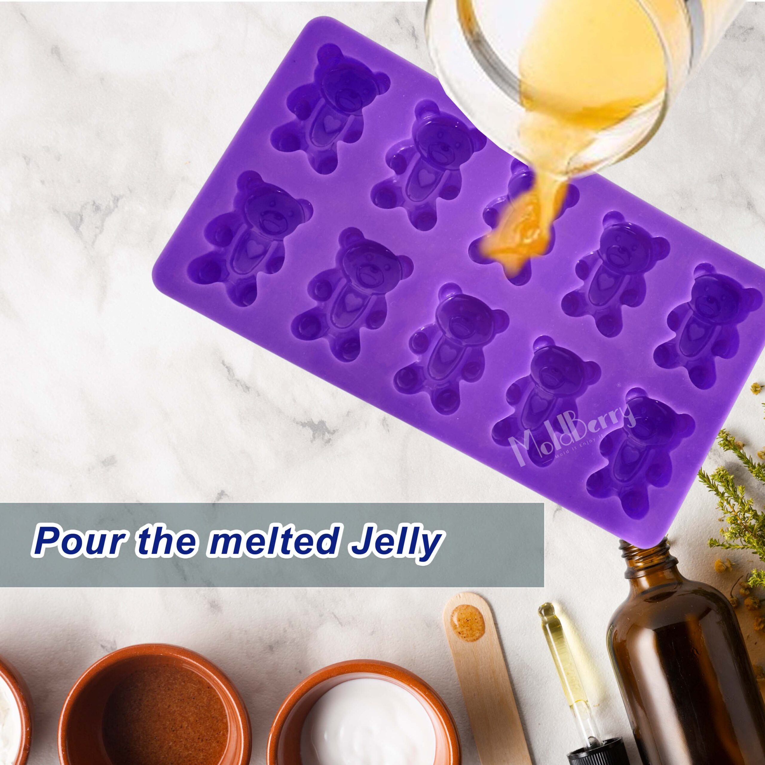 MoldBerry Silicone 10 Cavity Chocolate Mould Baking Teddy Bears Jelly Mold Candy Cake Decoration Ice Tray Candle Making Homemade Flexible Reusable (Pack Of 1)