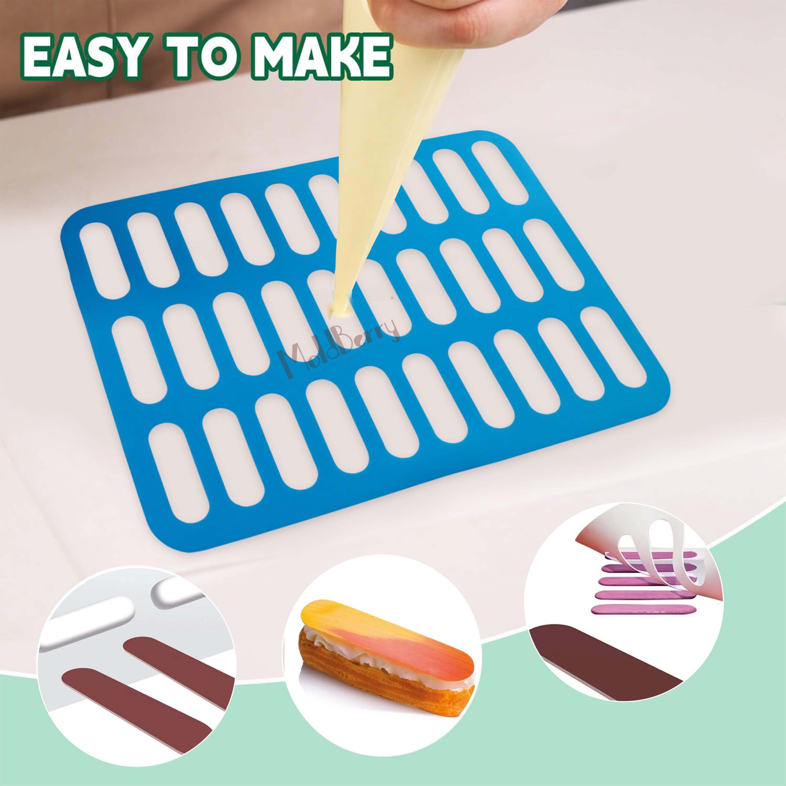 - Perfect Oval Shape – 30 precise oval cavities ideal for making uniform eclairs, chocolate bars, biscuit toppers, or mousse garnishes like a pro chef.