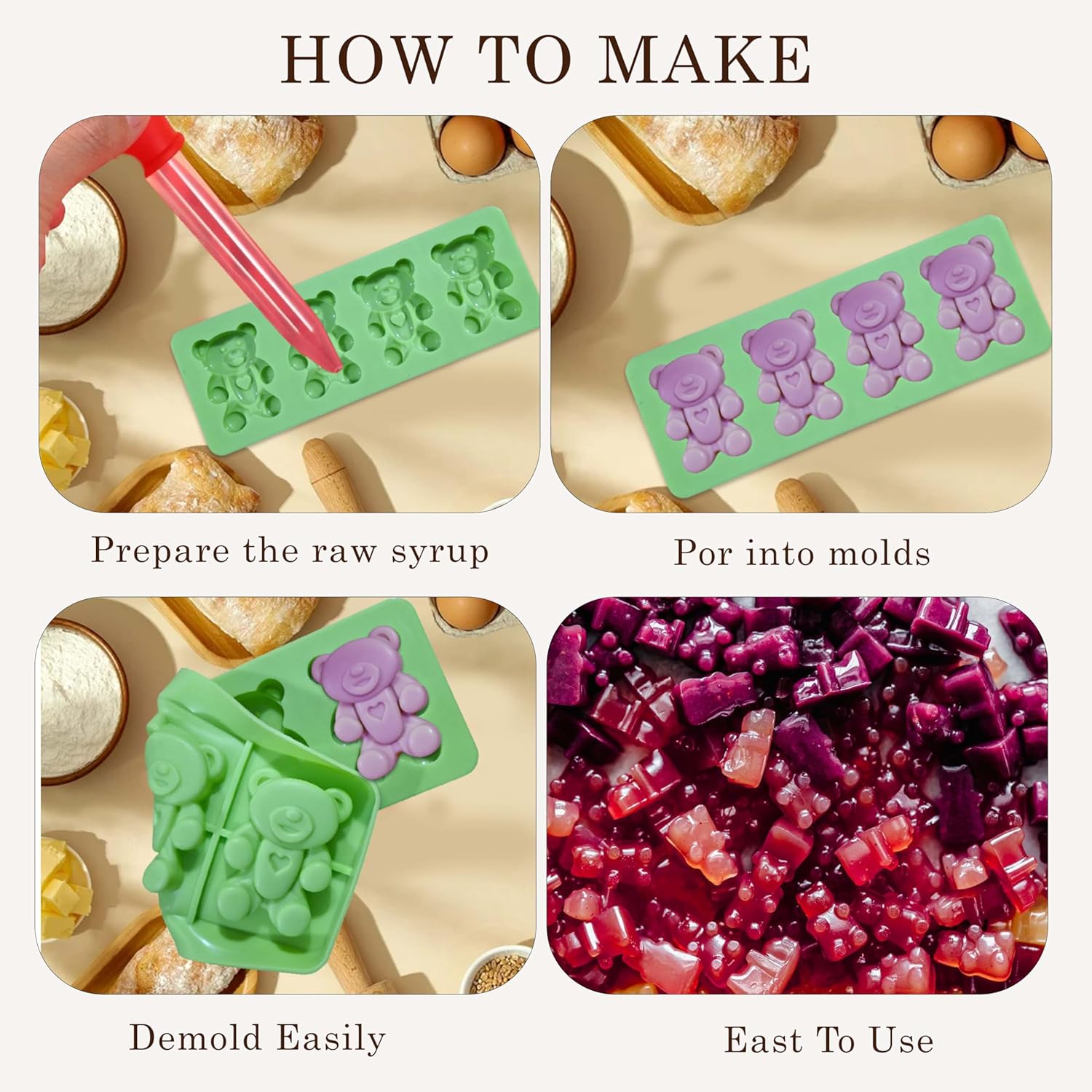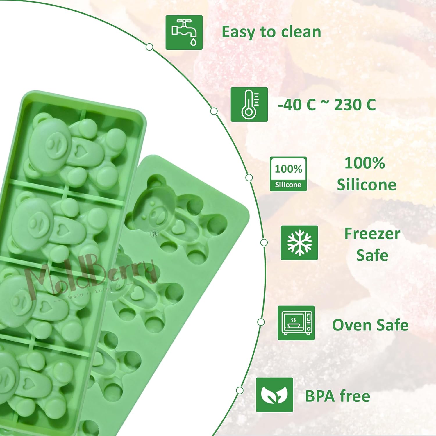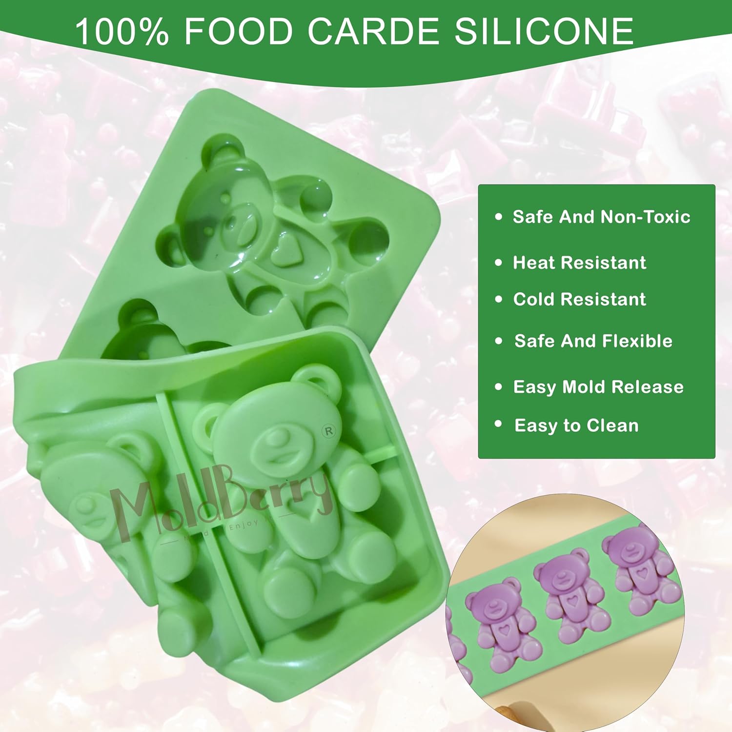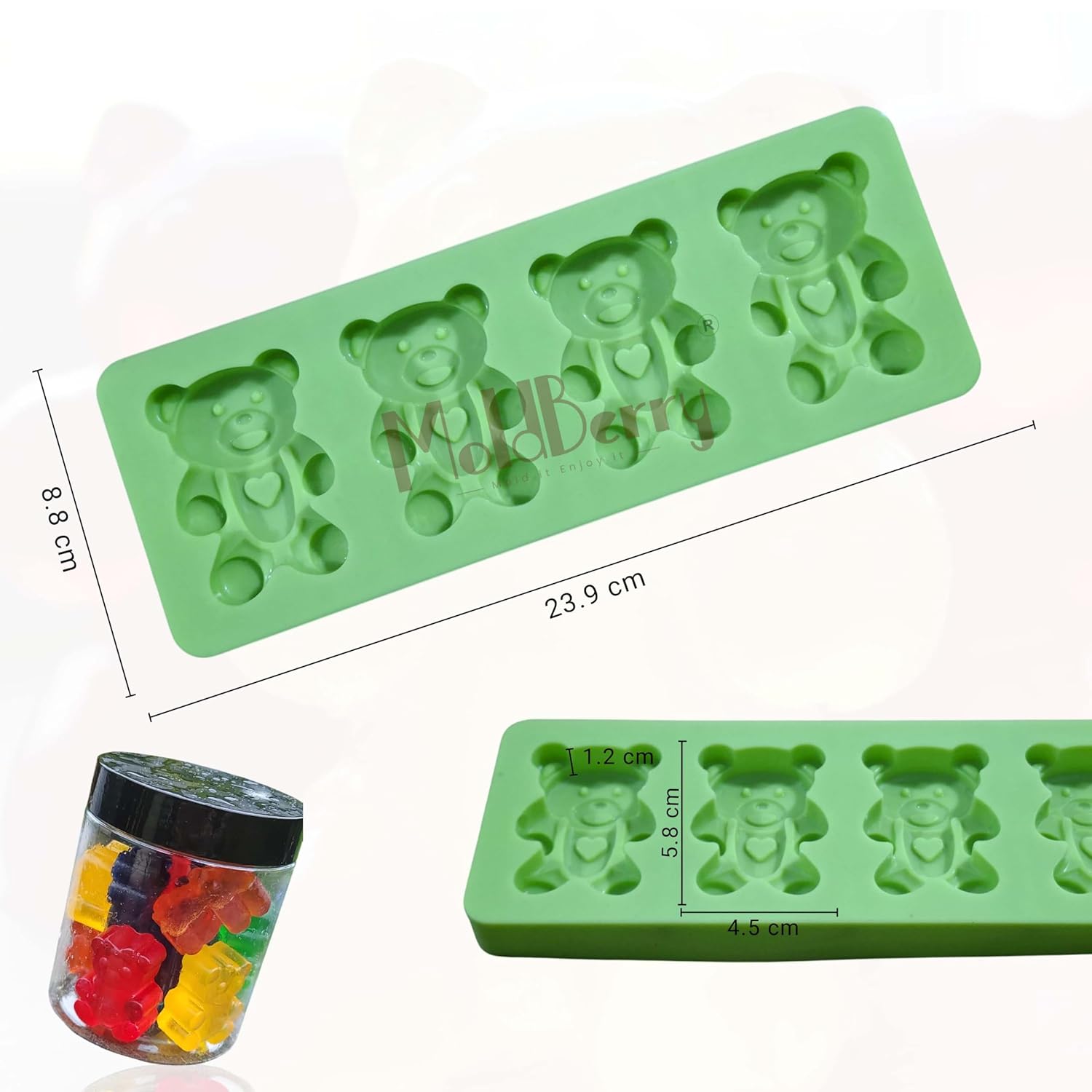 MoldBerry Teddy Bear Silicone Chocolate Mould | 4 Cavity Gummy Candy Jelly Ice Tray | BPA Free Flexible Baking Mold for Chocolates, Gummies Pack 1